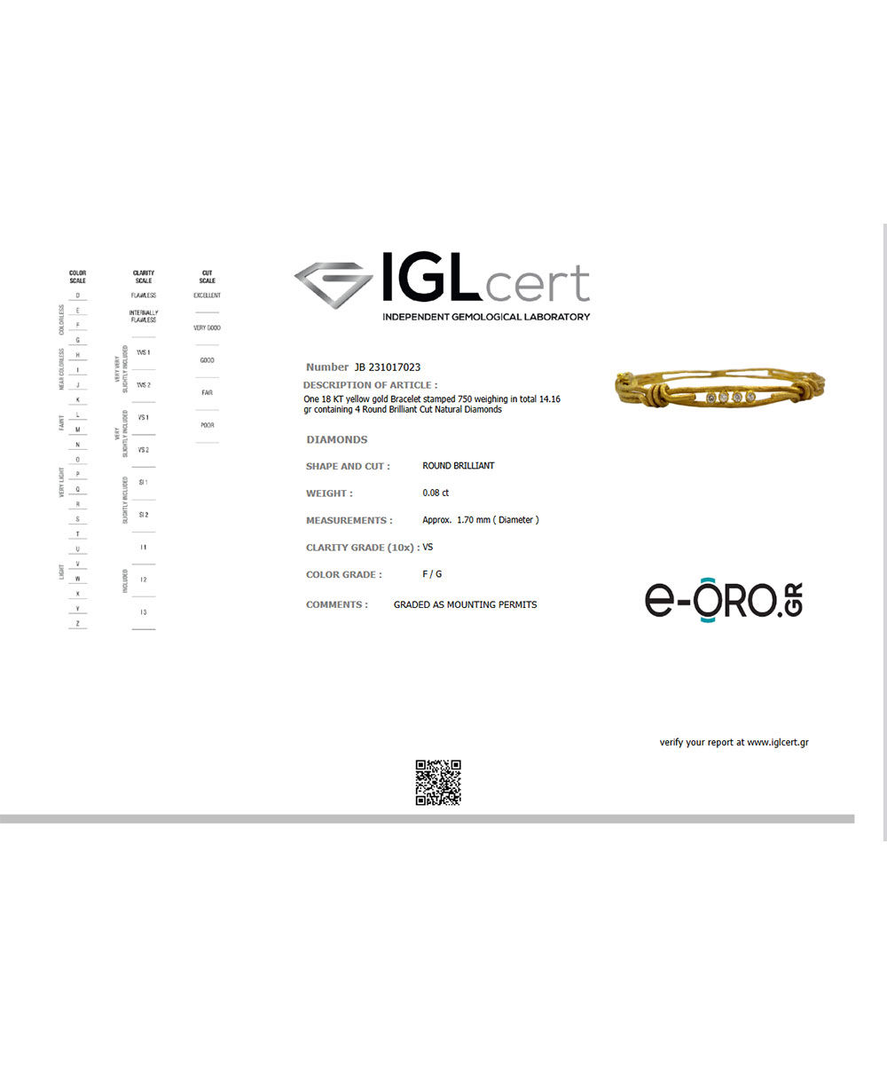 Γυναικείο Βραχιόλι Χρυσό 18 καράτια με Διαμάντια σε Κοπή Μπριγιάν(Br).