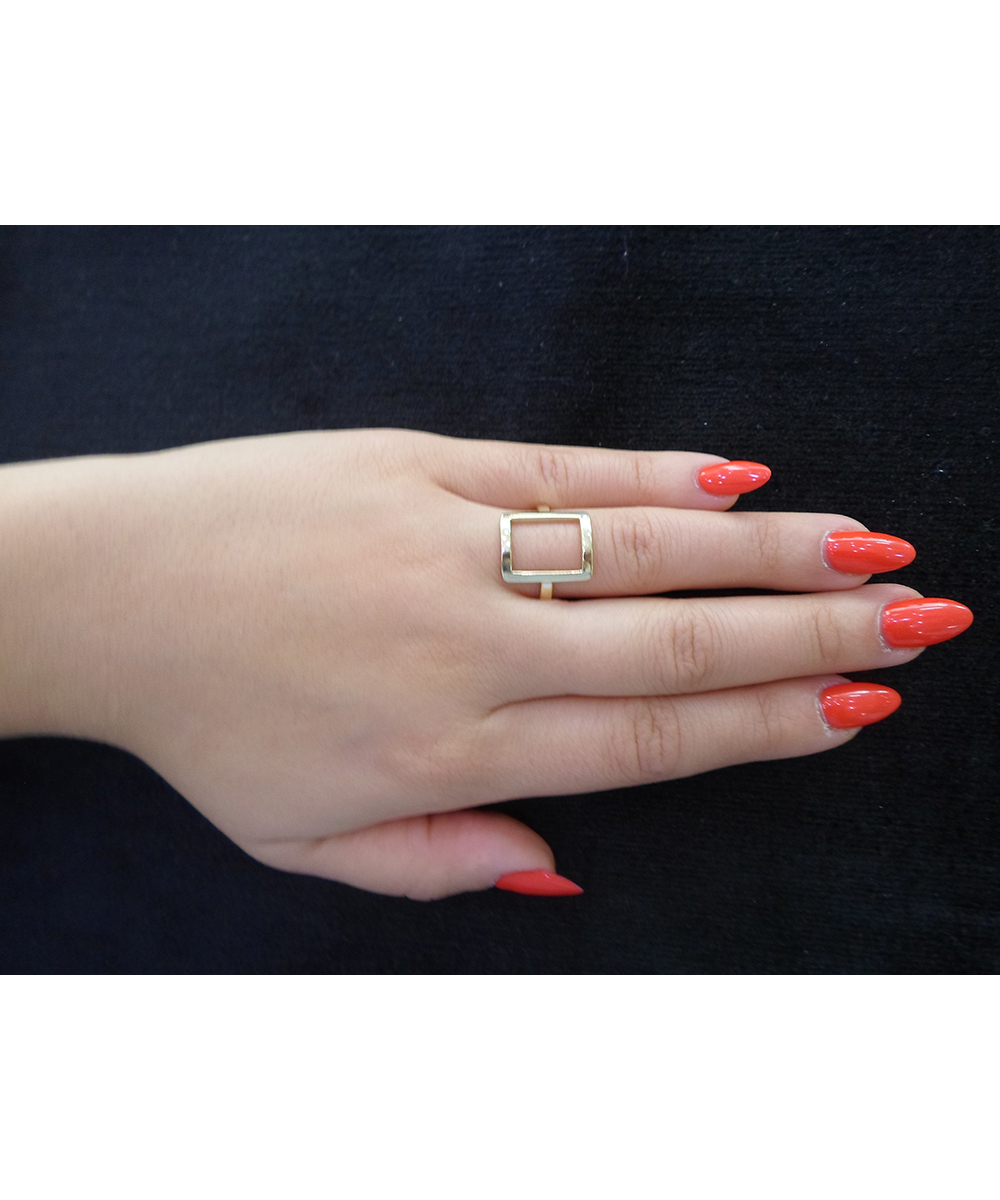 Minimal δαχτυλίδι από χρυσό 9 καράτια με ανοιχτό ορθογώνιο σχέδιο. Μοντέρνο και κομψό, αναδεικνύει τη γεωμετρική αισθητική και φοριέται μόνο του ή σε συνδυασμό με άλλα δαχτυλίδια.