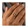 Μοντέρνο δαχτυλίδι χρυσό 9 καράτια με διπλό σχεδιασμό διακοσμημένες με λευκά ζιργκόν. Κομψό και λαμπερό, προσφέρει μοντέρνα αισθητική με διακριτική πολυτέλεια.