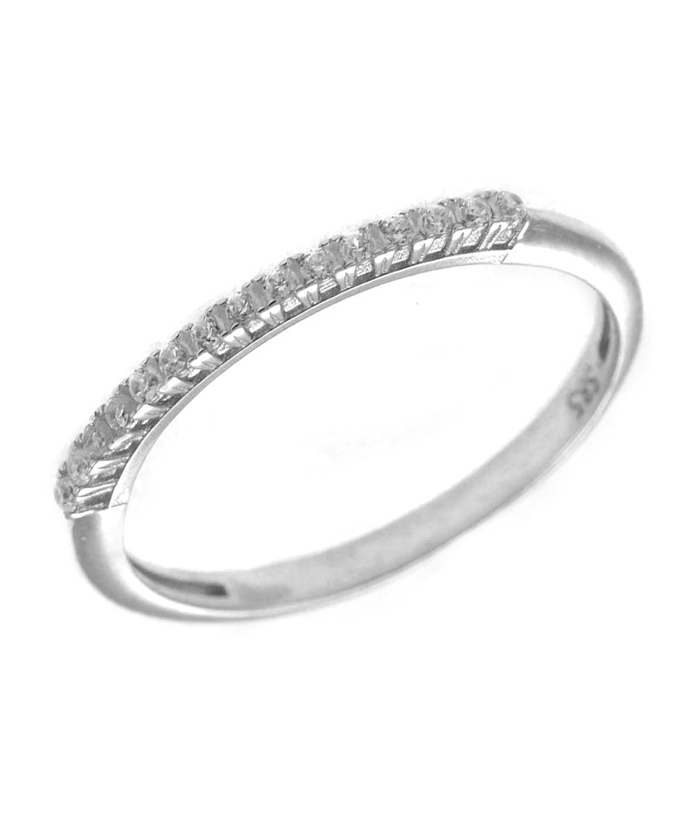 Εντυπωσιακό μισόβερο δαχτυλίδι σε λευκό χρυσό 14 καράτια με μια σειρά από λευκά ζιργκόν. Κλασικό και διαχρονικό σχέδιο που αναδεικνύει την κομψότητα κάθε εμφάνισης.