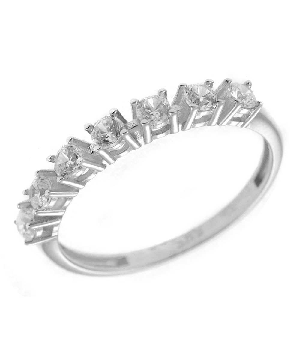 Κομψό μισόβερο δαχτυλίδι από λευκόχρυσο 14Κ με λαμπερά λευκά ζιργκόν σε ίσια γραμμή. Ιδανικό για γάμο, αρραβώνα ή καθημερινό στυλ.