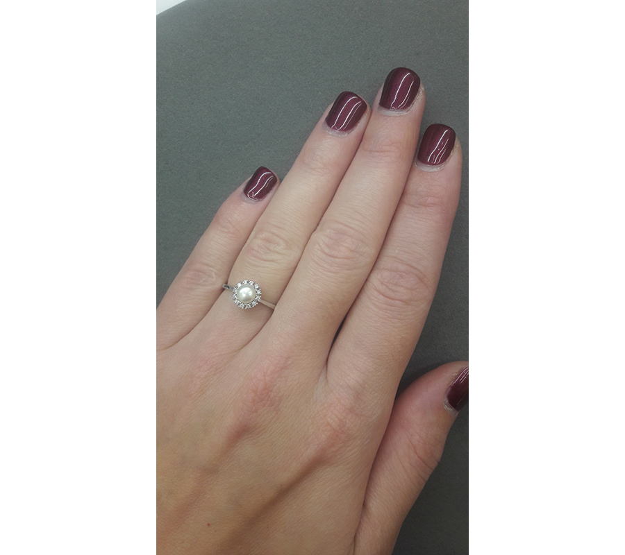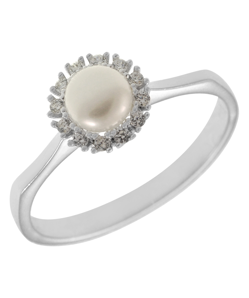 Γυναικείο Δαχτυλίδι Λευκόχρυσο 14 καράτια με πέτρες Ζιργκόν και με λευκό Μαργαριτάρι.