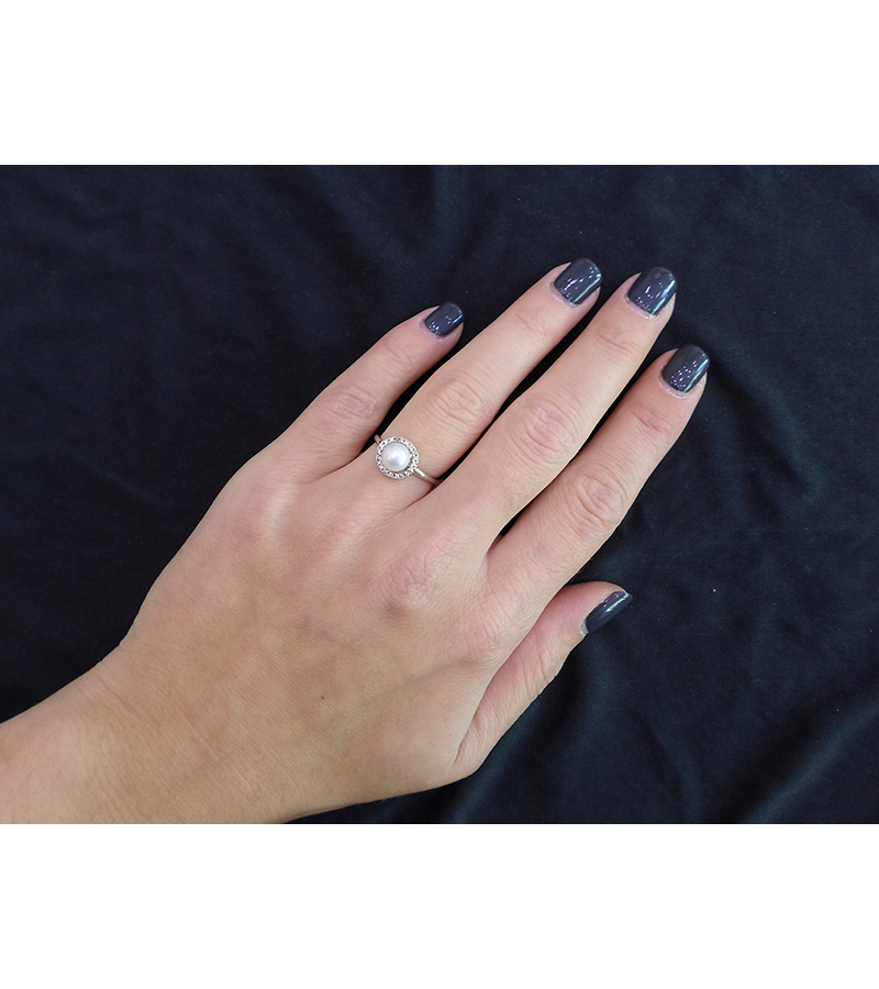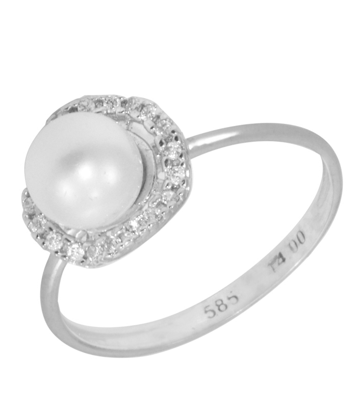 Γυναικείο Δαχτυλίδι Λευκόχρυσο 14 καράτια με πέτρες Ζιργκόν και λευκό Μαργαριτάρι.