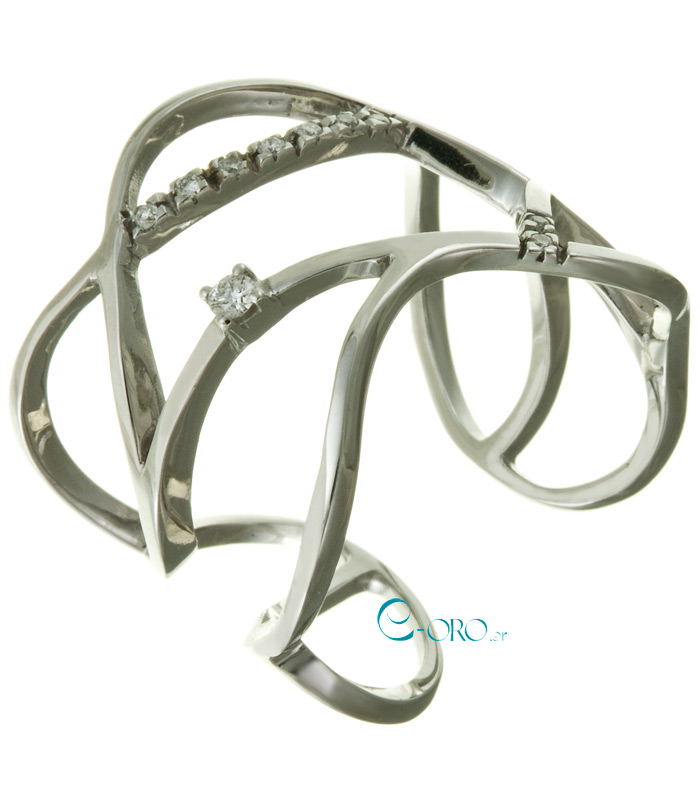 Γυναικείο Δαχτυλίδι Λευκόχρυσο 18 καράτια με Διαμάντια σε Κοπή Μπριγιάν(Br).