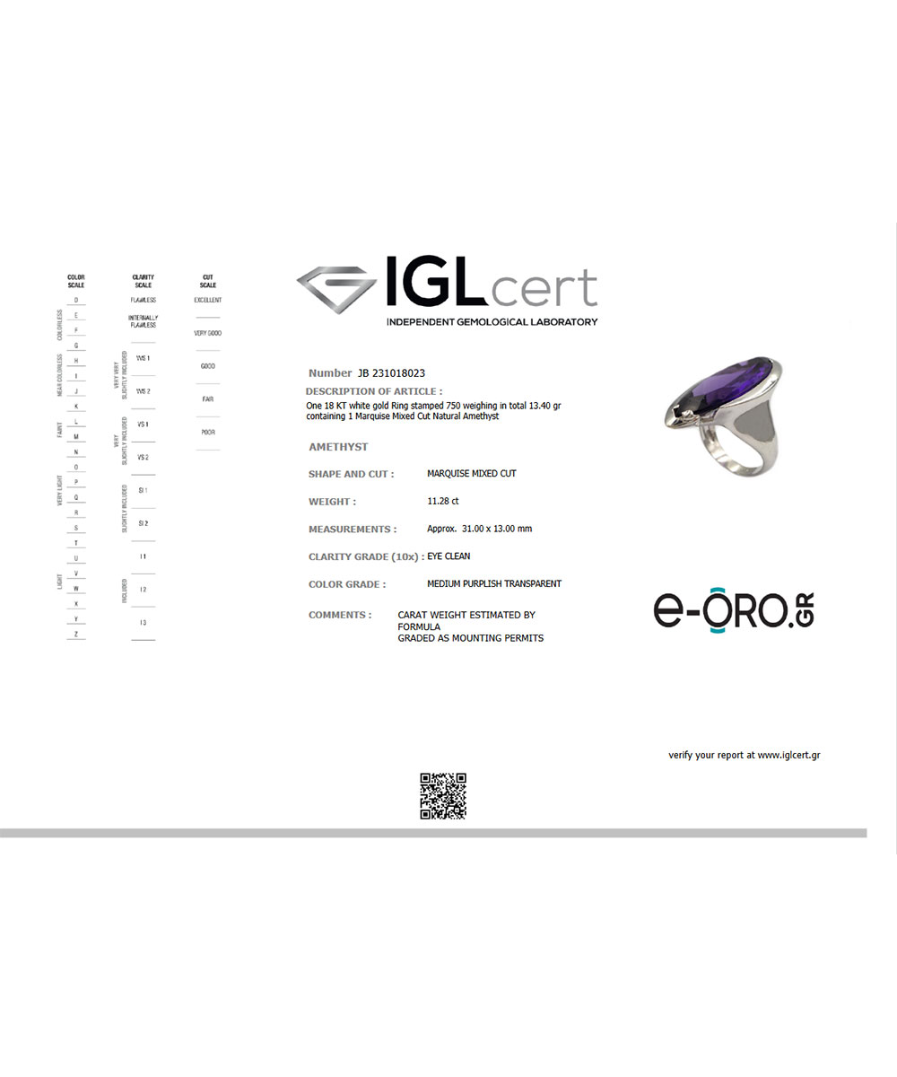 Γυναικείο Δαχτυλίδι Λευκόχρυσο 18 καράτια με πέτρα Αμέθυστο.