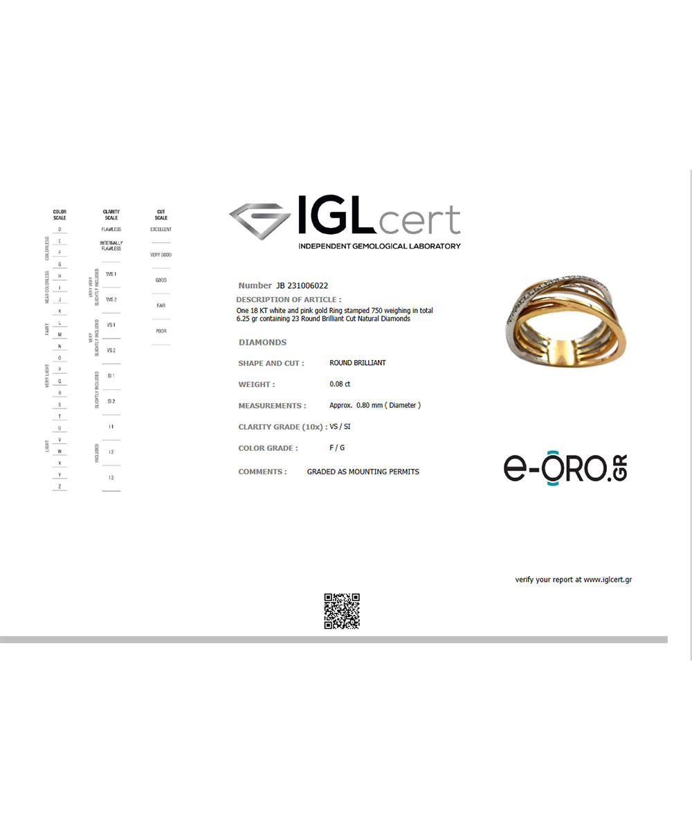 Γυναικείο Δαχτυλίδι Χρυσό 18 καράτια με Διαμάντια σε Κοπή Μπριγιάν(Br).