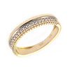 Εντυπωσιακό δίχρωμο δαχτυλίδι 9 καρατίων με συνδυασμό κίτρινου και λευκού χρυσού και σειρά λαμπερών ζιργκόν στο κέντρο. Ο ιδιαίτερος σχεδιασμός του προσφέρει μοντέρνα αισθητική και διαχρονική κομψότητα.