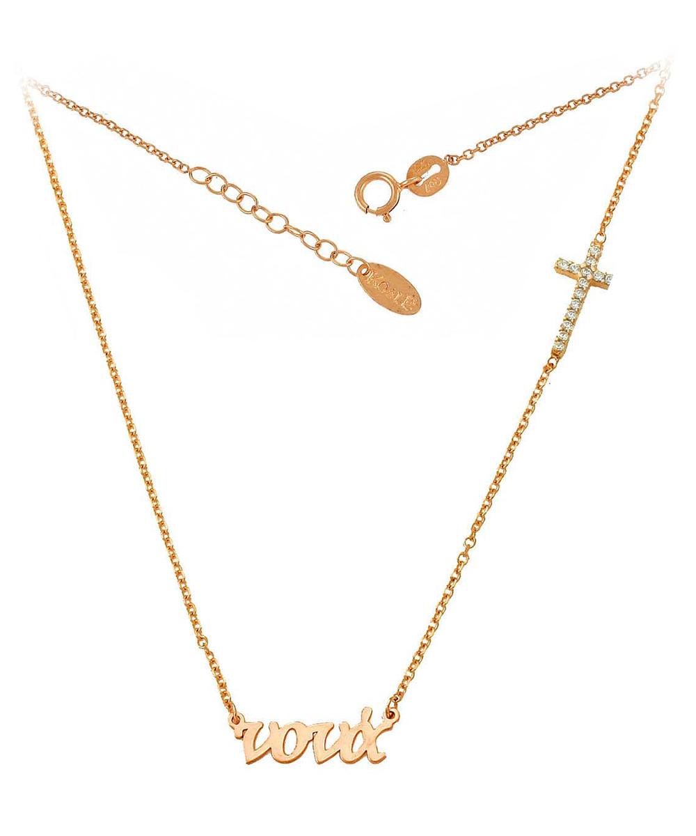 Γυναικείο Κολιέ ροζ χρυσό 14 καράτια με πέτρες Ζιργκόν.
