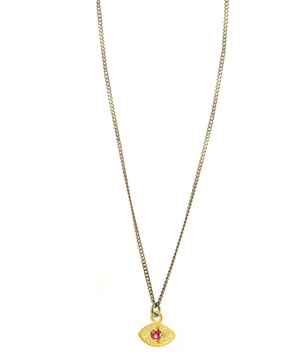 Γυναικείο κολιέ ασημόχρυσο με κρεμαστό μοτίφ 14 καράτια, αλυσίδα 925 και με πέτρα Ρουμπίνι.