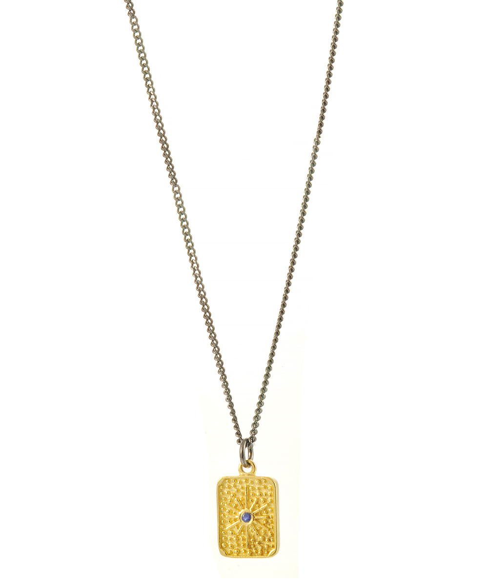 Γυναικείο κολιέ ασημόχρυσο με κρεμαστό μοτίφ 14 καράτια, αλυσίδα 925 και με πέτρα Ζαφείρι.