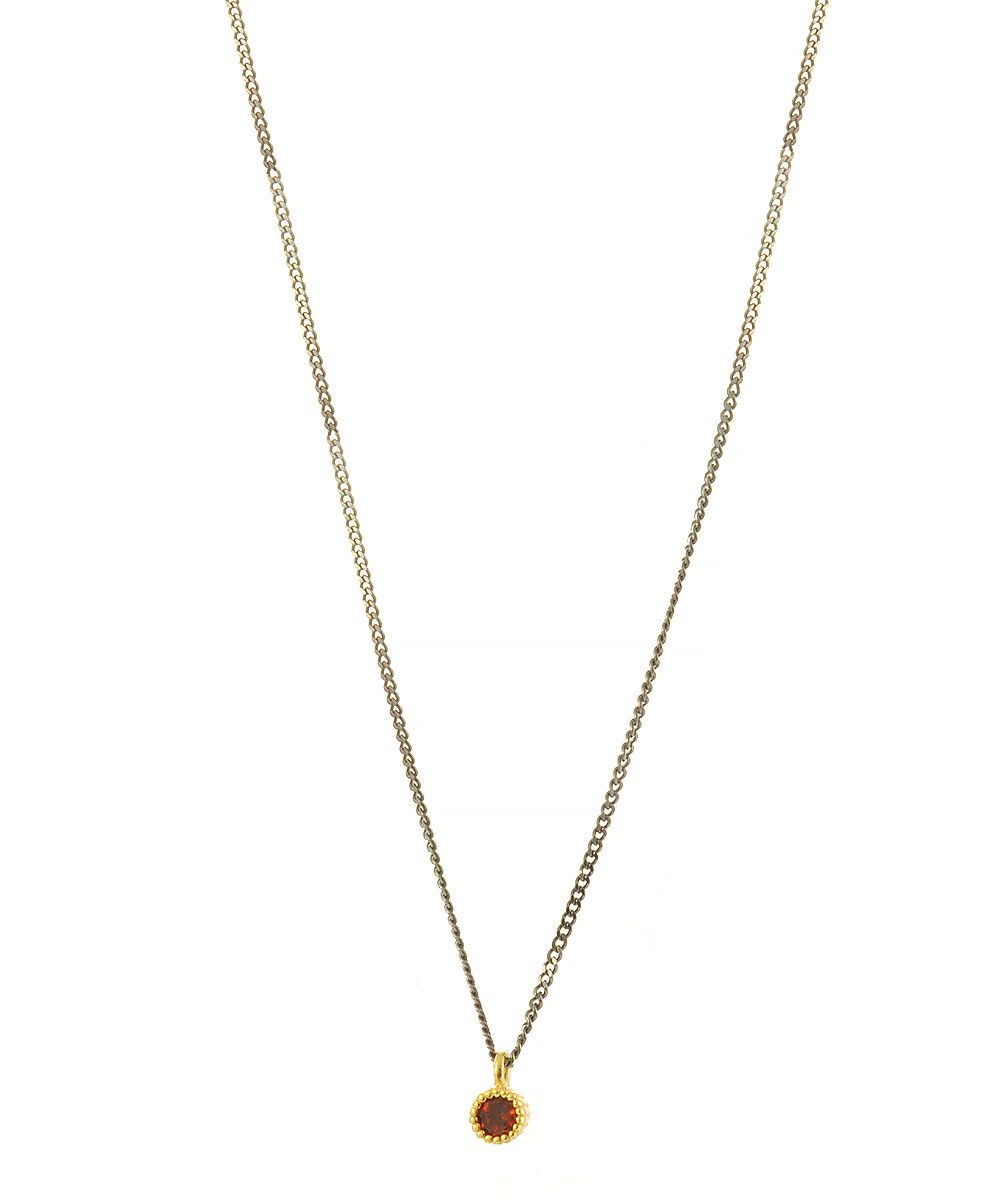Γυναικείο κολιέ ασημόχρυσο με κρεμαστό μοτίφ 14 καράτια, αλυσίδα 925 και με πέτρα Garnet.