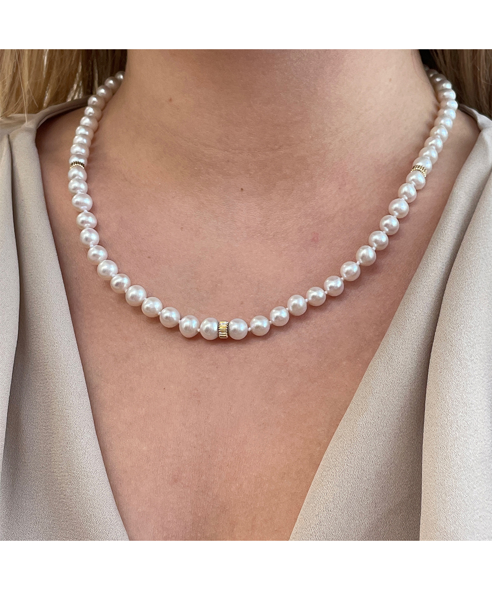 Γυναικείο Κολιέ Χρυσό 14 καράτια με λευκά Μαργαριτάρια γλυκού νερού Fresh Water Pearl σε σχήμα Round.