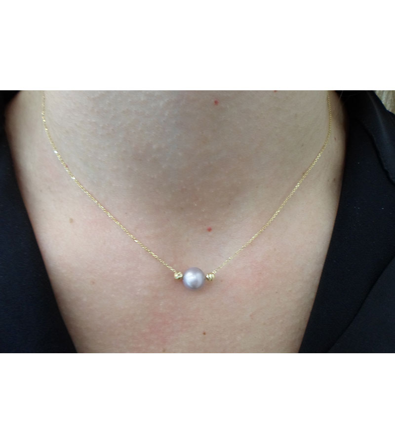 Γυναικείο Κολιέ Χρυσό 14 καράτια με γκρι Μαργαριτάρι γλυκού νερού Fresh Water Pearl σε σχήμα Round.