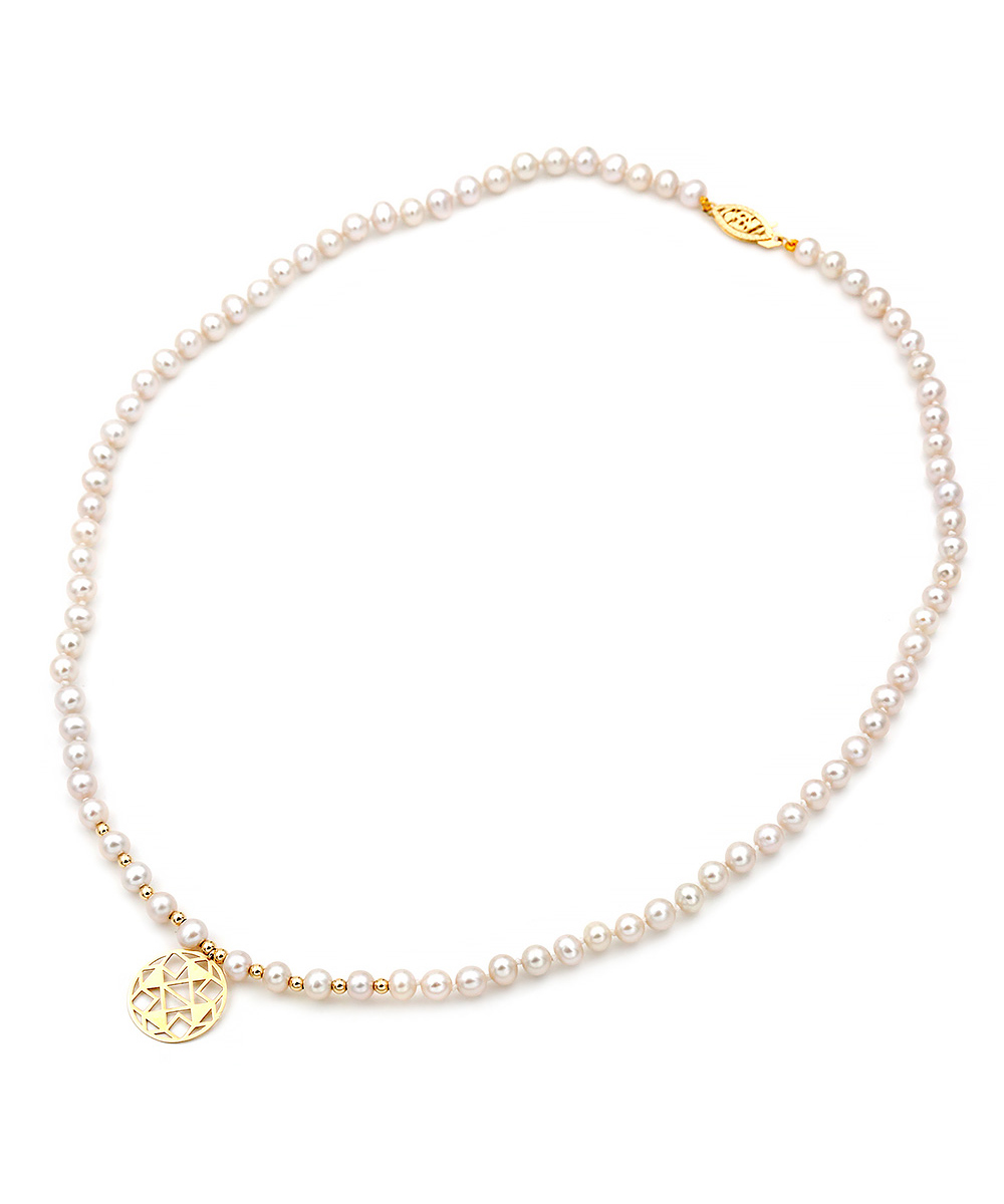 Γυναικείο Κολιέ Χρυσό 14 καράτια με λευκά Μαργαριτάρια γλυκού νερού Fresh Water Pearl σε σχήμα Round.