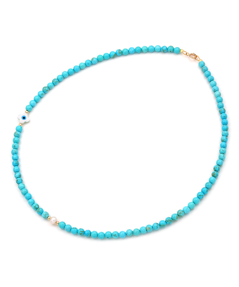 Γυναικείο Κολιέ Χρυσό 14 καράτια με τιρκουάζ πέτρες.