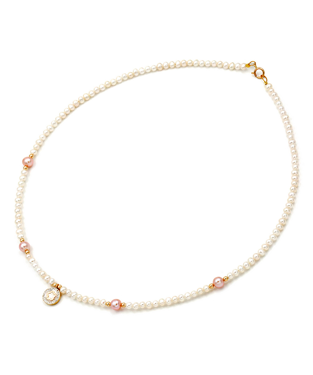 Γυναικείο Κολιέ Χρυσό 14 καράτια με λευκά και ροζ Μαργαριτάρια γλυκού νερού Fresh Water Pearl σε σχήμα Round.