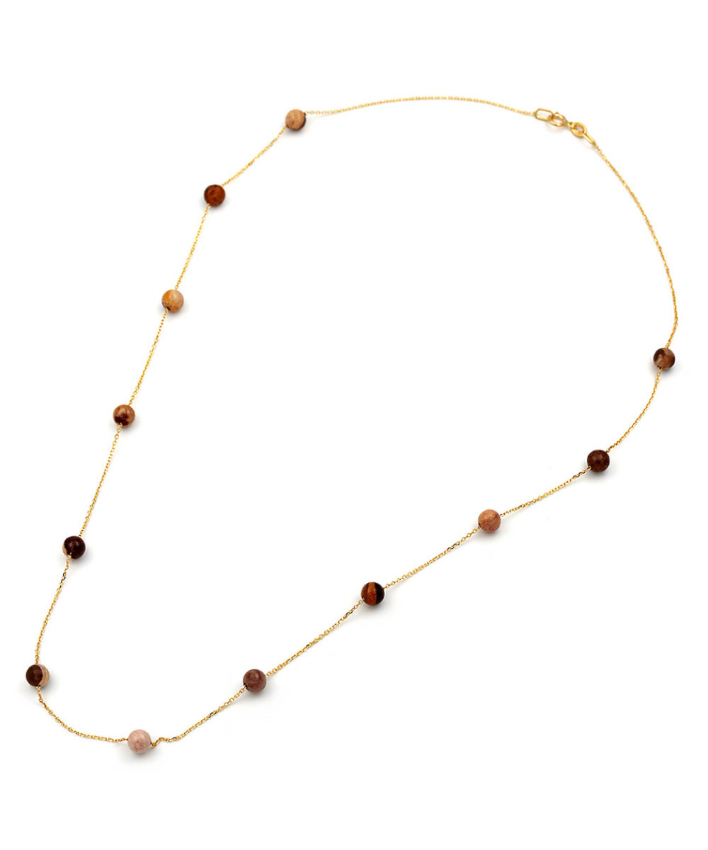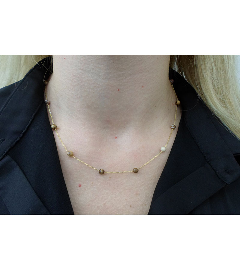 Γυναικείο Κολιέ Χρυσό 14 καράτια με πέτρες Brown Zebra Jasper.