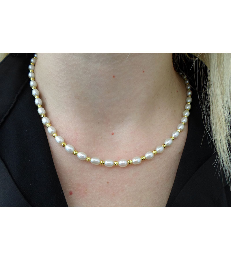 Γυναικείο Κολιέ Χρυσό 14 καράτια με λευκά Μαργαριτάρια γλυκού νερού Fresh Water Pearl σε σχήμα Drop.