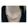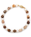 Γυναικείο Κολιέ Χρυσό 14 καράτια με λευκά μαργαριτάρια γλυκού νερού Fresh Water Pearl σε σχήμα Round και με πέτρες Brown Zebra Jasper.