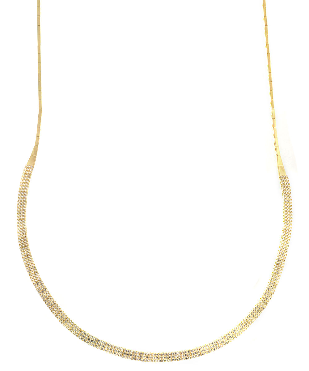 Πολυτελές κολιέ από χρυσό 14 καράτια, στολισμένο με λαμπερά λευκά Ζιργκόν σε συνεχόμενη γραμμή. Ιδανικό για βραδινές και επίσημες εμφανίσεις.