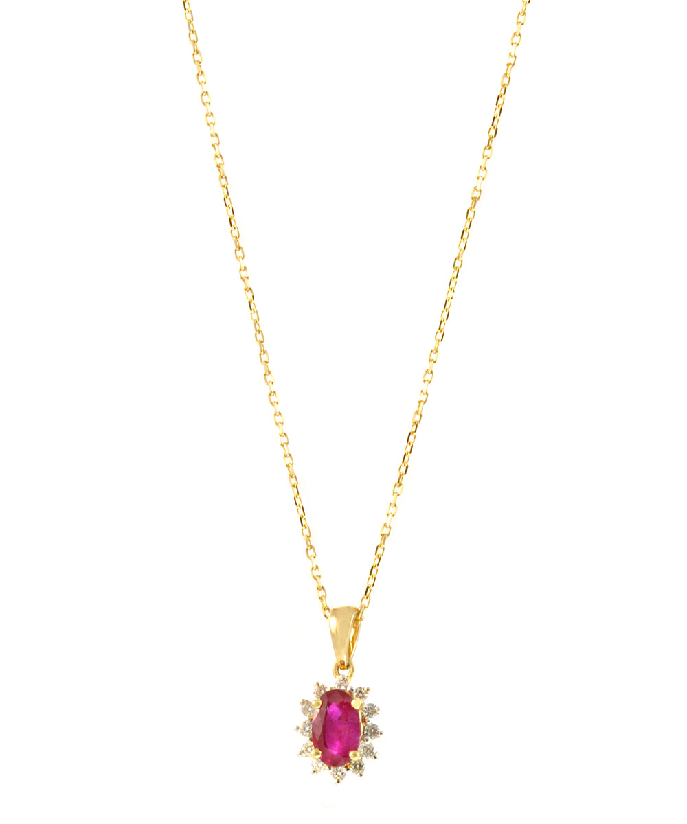 Γυναικείο Κολιέ Χρυσό 18 Καράτια με Διαμάντια σε Κοπή Μπριγιάν (Br) και με Ρουμπίνι.
