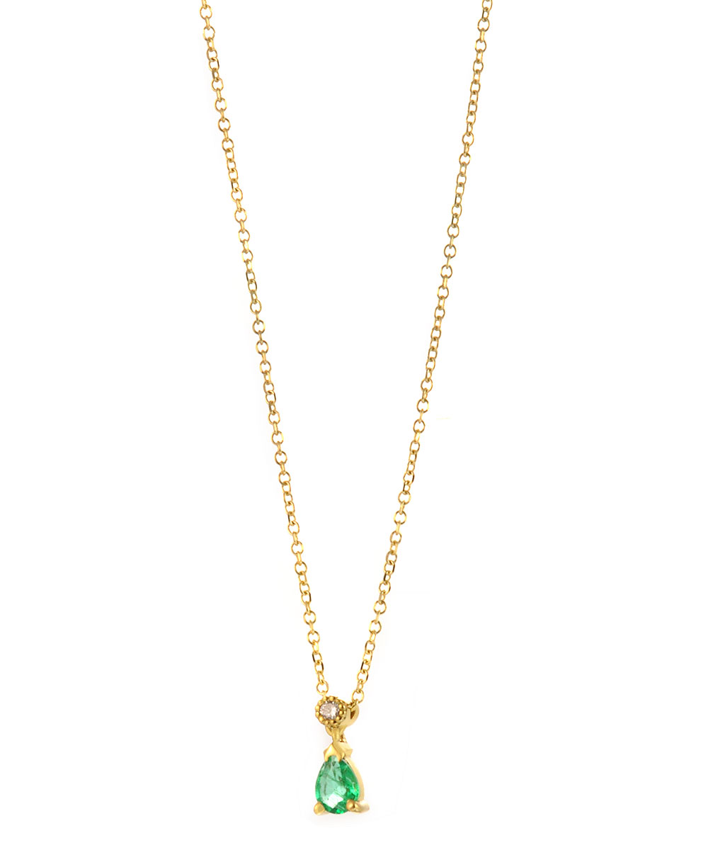 Γυναικείο κολιέ χρυσό 18 Καράτια με Διαμάντι σε κοπή Μπριγιάν (Br) και με Σμαράγδι.