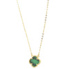 Χρυσό κολιέ 9 καράτια με κρεμαστό μοτίφ και πράσινη πέτρα, σύμβολο τύχης και θετικής ενέργειας. Το κομψό του σχέδιο με διακριτικό πλαίσιο προσφέρει λάμψη και διαχρονικό στυλ, ιδανικό για καθημερινή χρήση αλλά και για δώρο με συμβολισμό. Φοριέται μόνο του ή σε layering με άλλα κολιέ για μοντέρνο αποτέλεσμα.