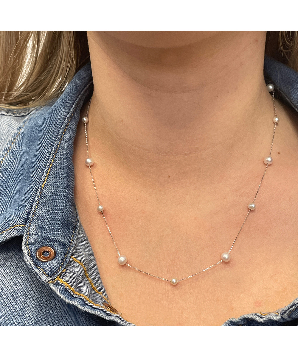 Κολιέ Λευκόχρυσο 14 καράτια με λευκά Μαργαριτάρια γλυκού νερού Fresh Water Pearl σε σχήμα Round.