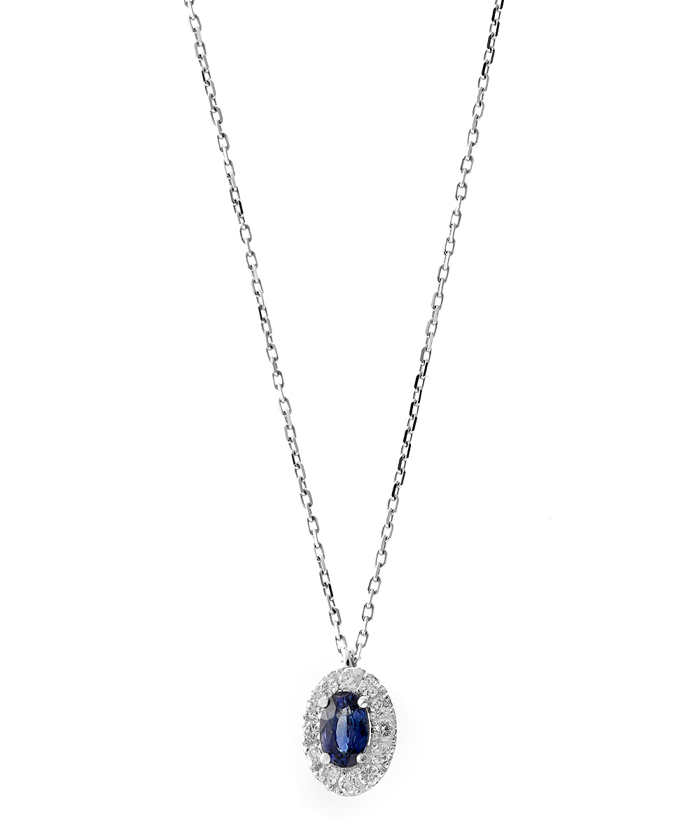 Γυναικείο Κολιέ Λευκόχρυσο 18 Καράτια με Διαμάντια σε Κοπή Μπριγιάν(Br) και Ζαφείρι.