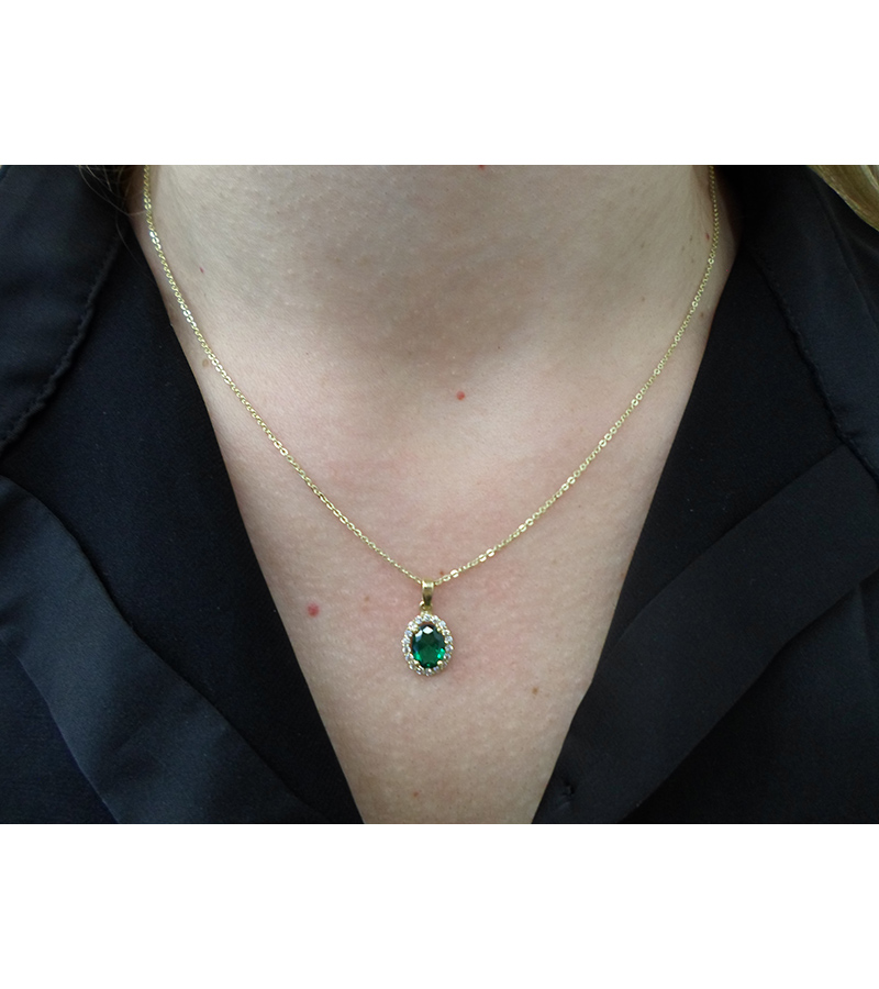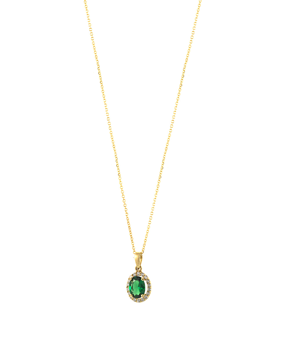 Γυναικείο Μενταγιόν Χρυσό 14 καράτια με χρωματιστή πέτρα και Ζιργκόν. Συνοδεύεται από αλυσίδα χρυσή 14 καράτια.