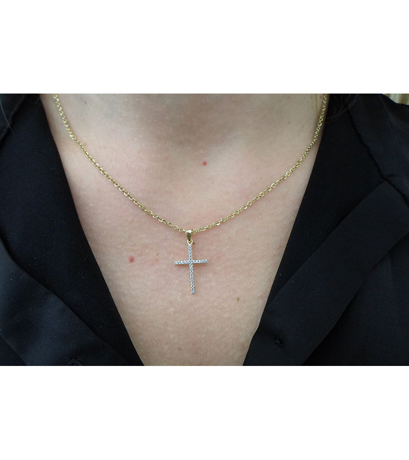 Μενταγιόν Χρυσό 14 καράτια με πέτρες Ζιργκόν. Συνοδεύεται από αλυσίδα χρυσή 14 καράτια.