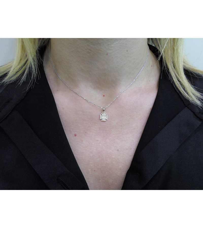 Μενταγιόν Λευκόχρυσο 14 καράτια με πέτρες Ζιργκόν. Συνοδεύεται από αλυσίδα λευκόχρυση 14 καράτια.