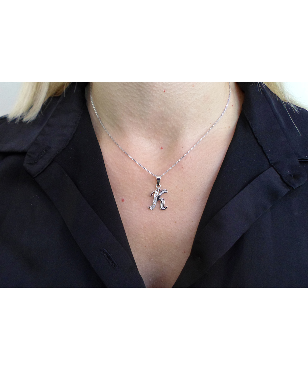 Γυναικείο Μενταγιόν Λευκόχρυσο 14 καράτια με πέτρες Ζιργκόν. Συνοδεύεται από αλυσίδα λευκόχρυση 14 καράτια.