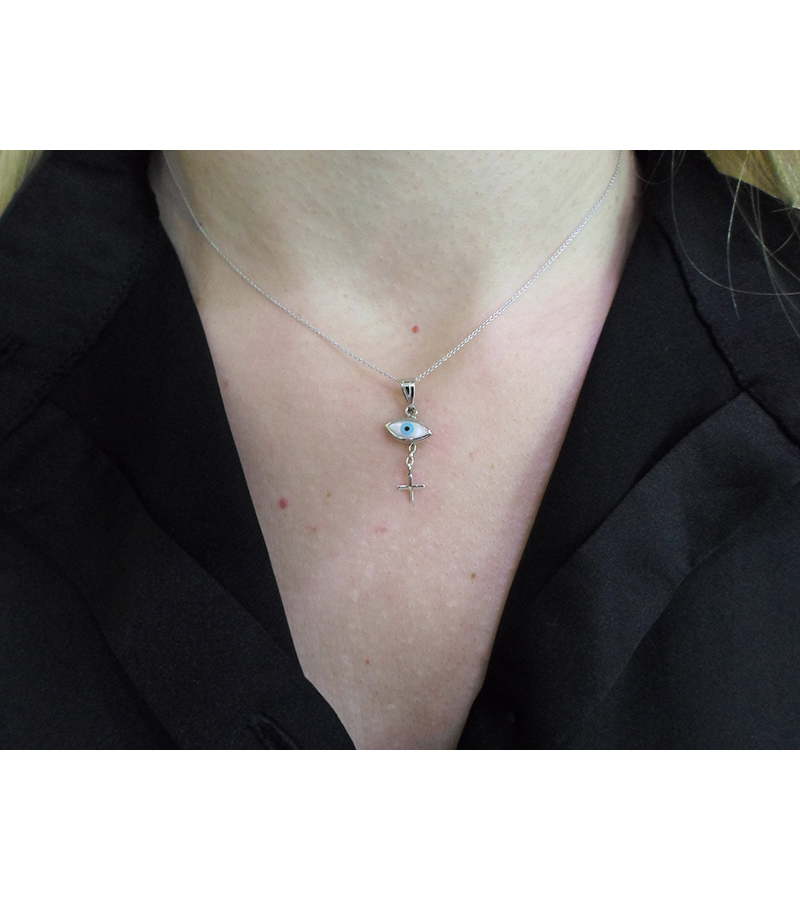 Γυναικείο Μενταγιόν Λευκόχρυσο 14 καράτια. Συνοδεύεται από αλυσίδα λευκόχρυση 14 καράτια.