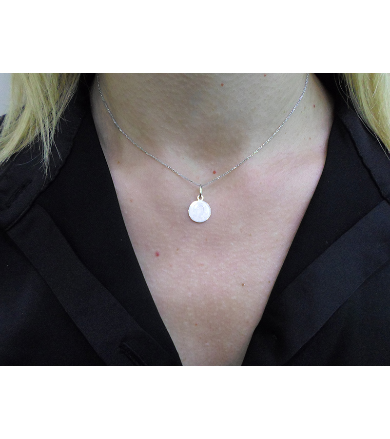 Μενταγιόν Λευκόχρυσο 14 καράτια. Συνοδεύεται από αλυσίδα λευκόχρυση 14 καράτια.