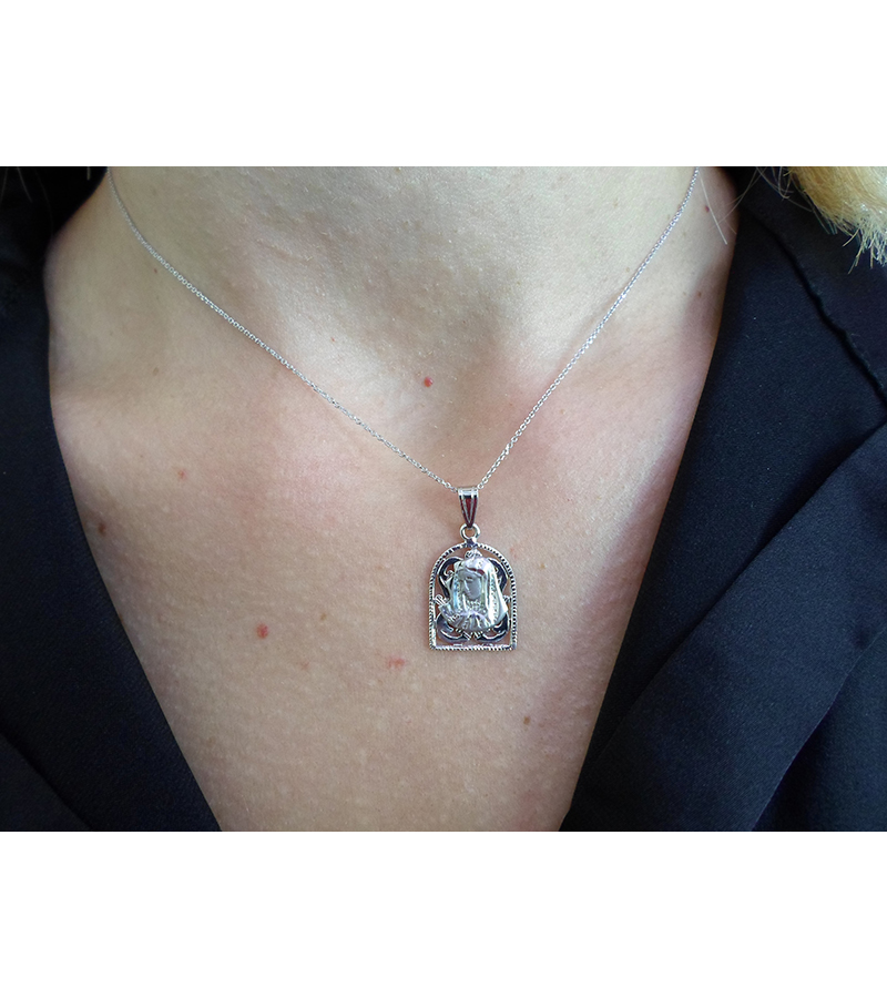 Γυναικείο Μενταγιόν Λευκόχρυσο 14 καράτια. Συνοδεύεται από αλυσίδα λευκόχρυση 14 καράτια.