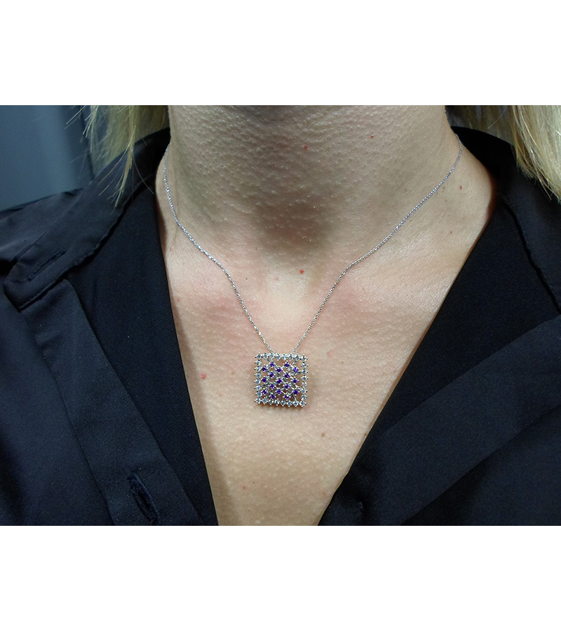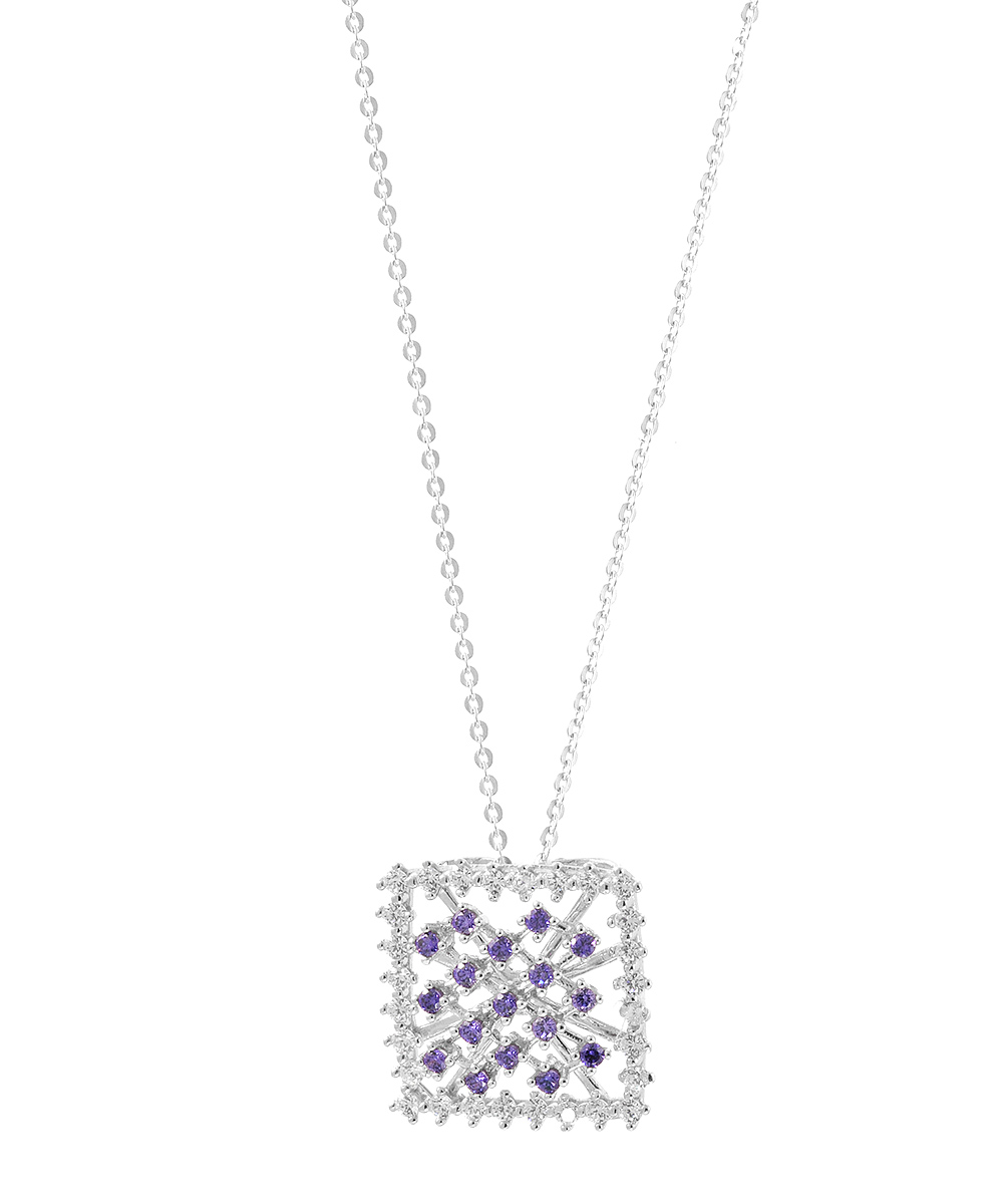 Γυναικείο Μενταγιόν Λευκόχρυσο 14 καράτια με πέτρες Ζιργκόν. Συνοδεύεται από αλυσίδα λευκόχρυση 14 καράτια.