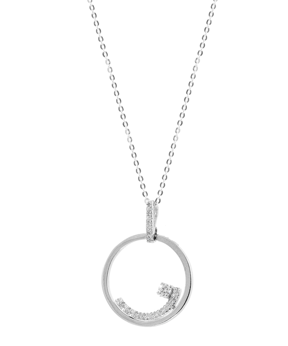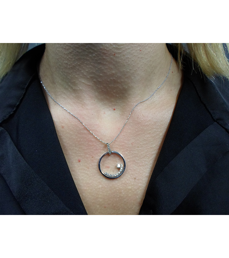 Γυναικείο Μενταγιόν Λευκόχρυσο 14 καράτια με πέτρες Ζιργκόν. Συνοδεύεται από αλυσίδα λευκόχρυση 14 καράτια.