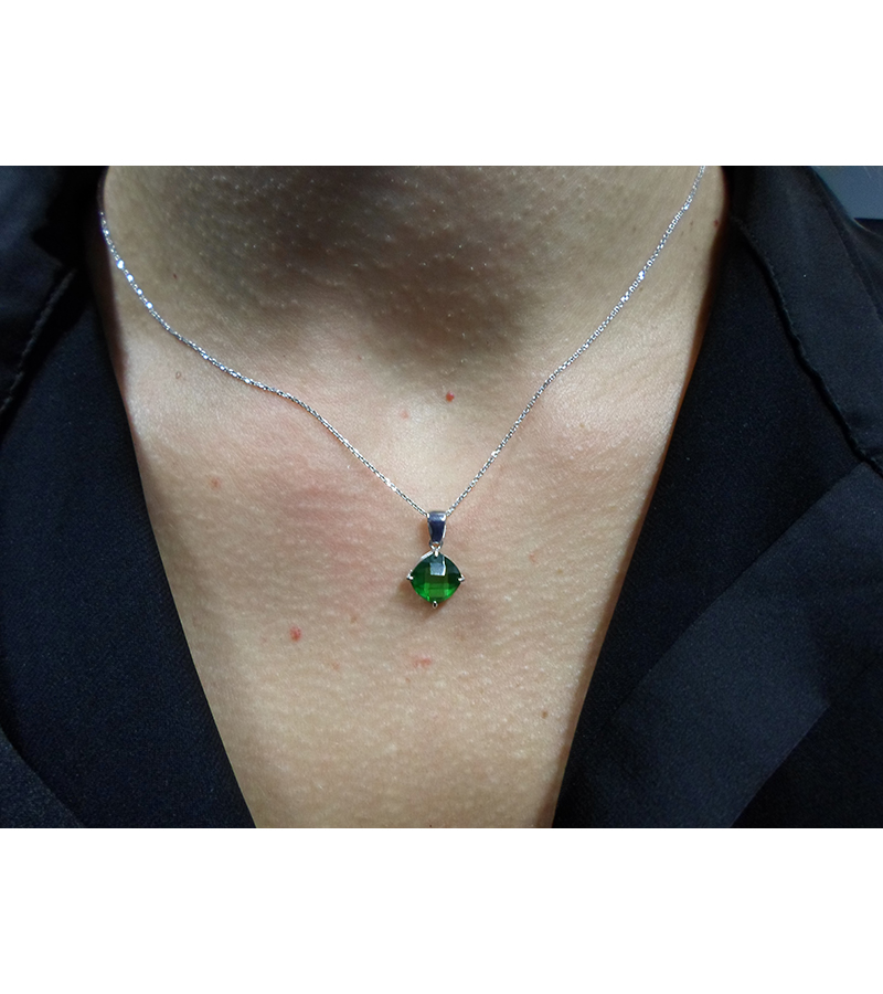 Γυναικείο Μενταγιόν Λευκόχρυσο 14 καράτια με πέτρα Ζιργκόν. Συνοδεύεται από αλυσίδα λευκόχρυση 14 καράτια.