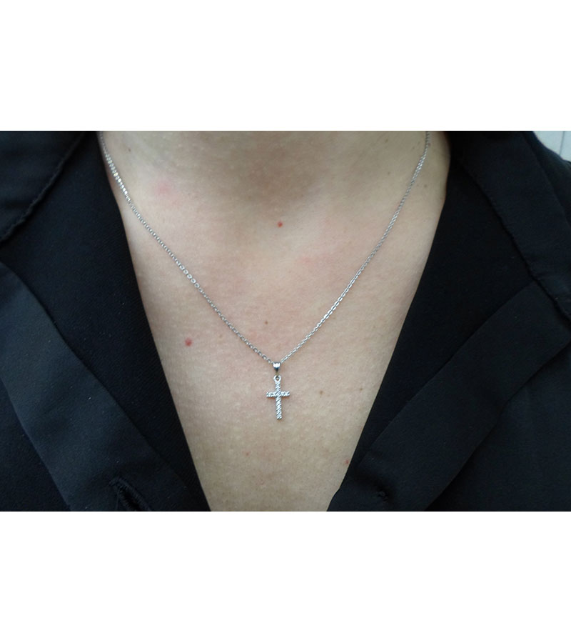 Γυναικείο μενταγιόν λευκόχρυσο 14 καράτια με πέτρες Ζιργκόν. Συνοδεύεται από αλυσίδα λευκόχρυση 14 καράτια.