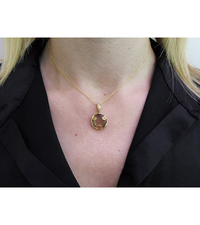 Μενταγιόν Χρυσό 14 καράτια με πέτρες Ζιργκόν. Συνοδεύεται από αλυσίδα χρυσή 14 καράτια.