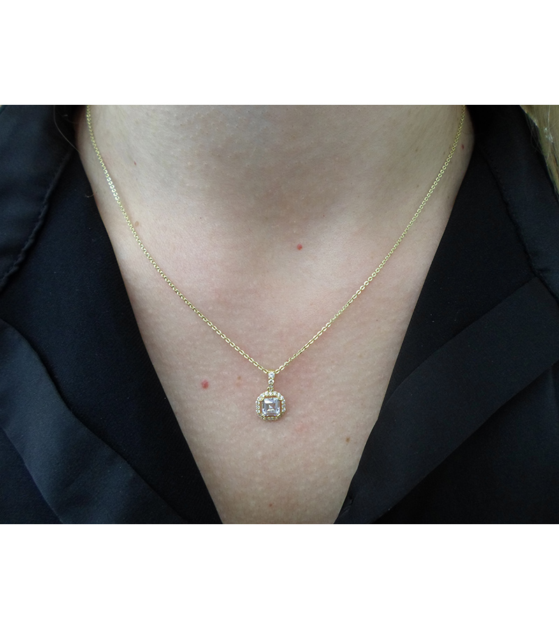 Γυναικείο Μοτίφ Χρυσό 14 καράτια με πέτρες Ζιργκόν. Συνοδεύεται από αλυσίδα Χρυσή 14 καράτια.