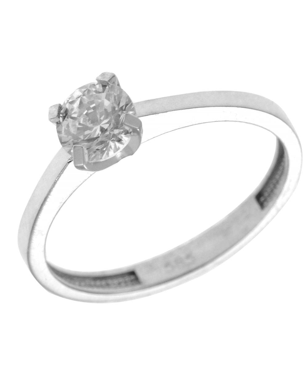 Μοντέρνο μονόπετρο δαχτυλίδι από λευκόχρυσο 14 καράτια με στρογγυλή πέτρα Ζιργκόν σε τετράγωνο δέσιμο. Minimal επιλογή που αποπνέει κομψότητα.