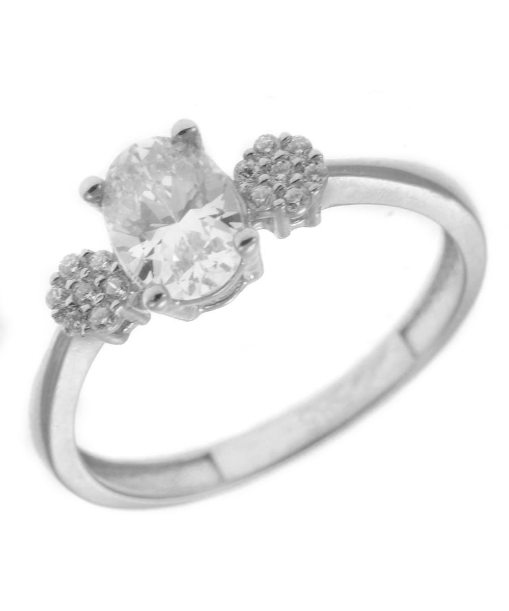 Εντυπωσιακό λευκόχρυσο μονόπετρο δαχτυλίδι 14 καράτια με κεντρικό οβάλ Ζιργκόν και διακριτικές πέτρες δεξιά και αριστερά. Κομψό και πολυτελές σχέδιο για κάθε περίσταση.