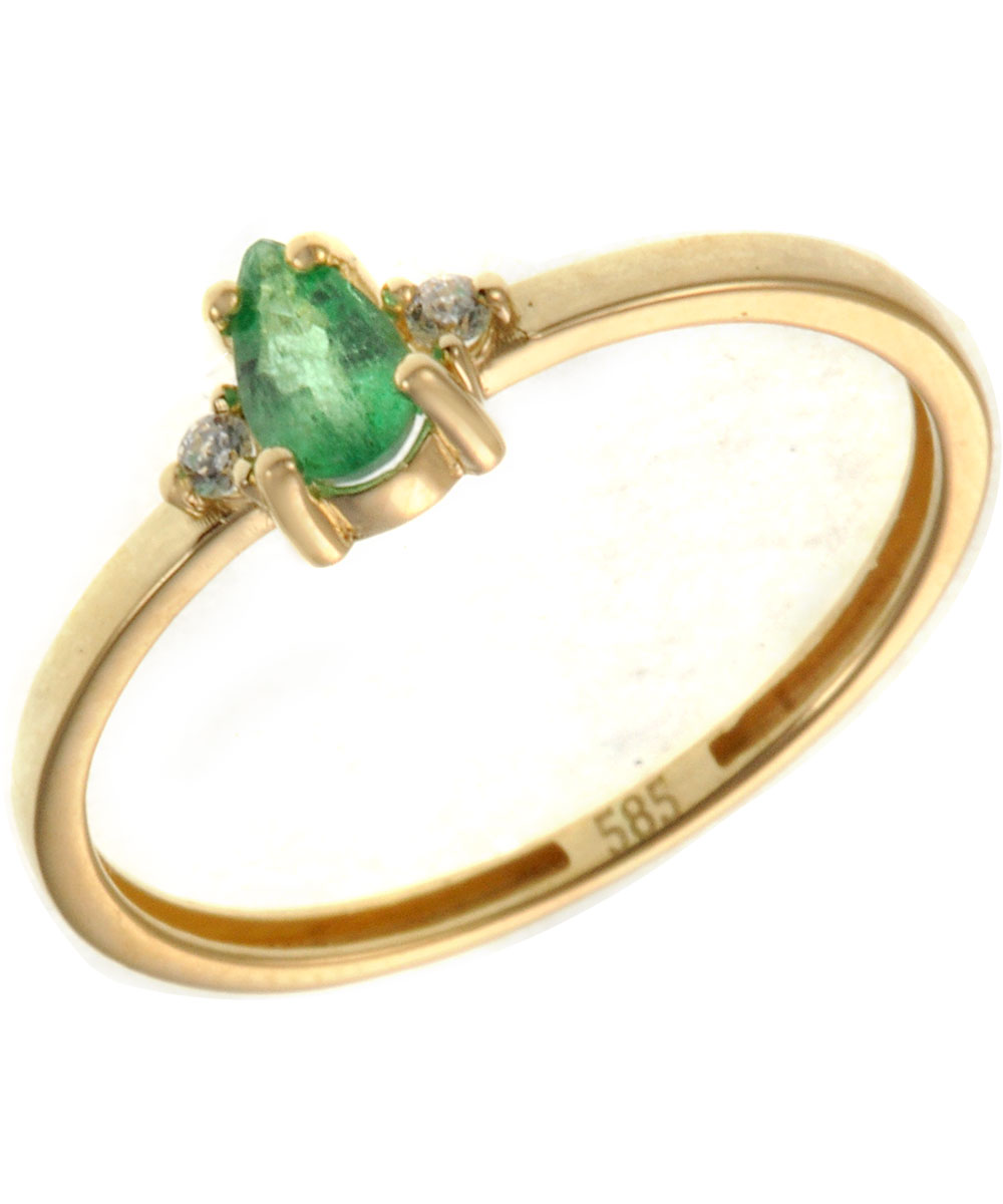 Γυναικείο δαχτυλίδι χρυσό 14 καράτια με πέτρες Ζιργκόν και με πέτρα Σμαράγδι.