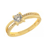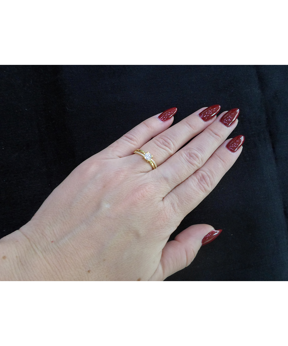 Λαμπερό μονόπετρο δαχτυλίδι από κίτρινο χρυσό 14 καράτια με εντυπωσιακή κεντρική πέτρα και πλαϊνές σειρές από λαμπερά ζιργκόν. Ο μοντέρνος split shank σχεδιασμός προσθέτει κομψότητα και φινέτσα, καθιστώντας το ιδανικό για δώρο, επέτειο ή δαχτυλίδι αρραβώνα. Ένα διαχρονικό κόσμημα που αναδεικνύει κάθε εμφάνιση.