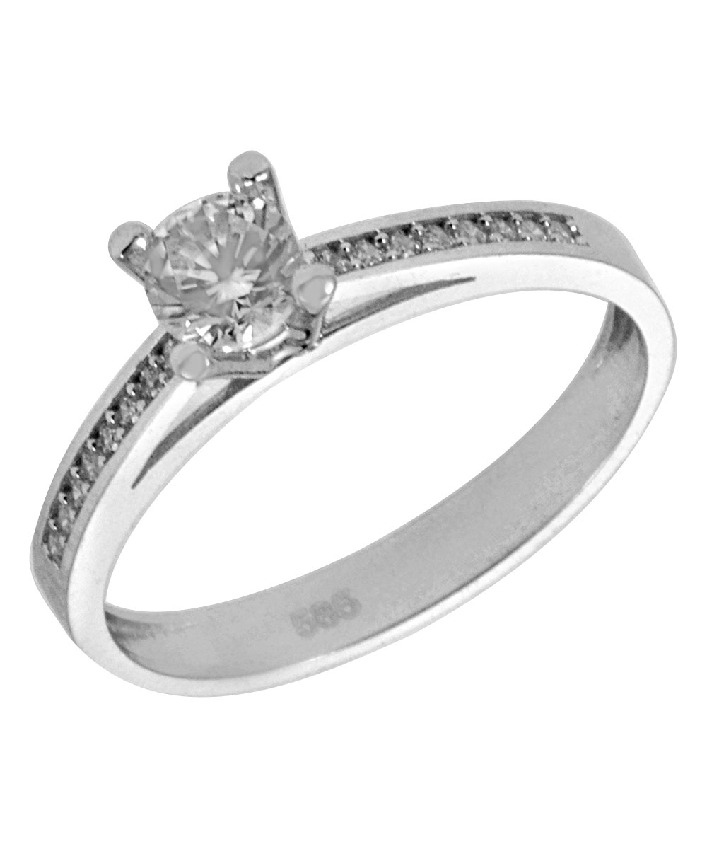 Γυναικείο δαχτυλίδι λευκόχρυσο 14 καράτια με πέτρες Ζιργκόν.