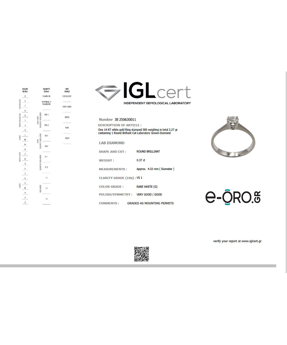 Μονόπετρο δαχτυλίδι λευκόχρυσο 14 καράτια με Lab Grown διαμάντι σε κοπή μπριγιάν(Br). Ο εκλεπτυσμένος σχεδιασμός του το καθιστά ιδανικό για γάμο, αρραβώνα ή επέτειο. Απόλυτη λάμψη με σύγχρονο ήθος.