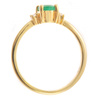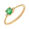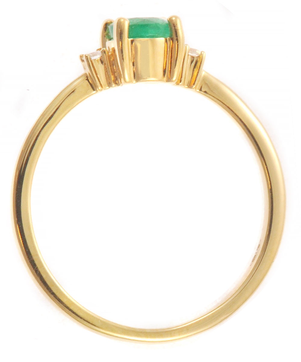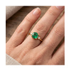 Κομψό δαχτυλίδι από χρυσό 18 καράτια με στρογγυλό σμαράγδι στο κέντρο και δύο λαμπερά διαμάντια στα πλάγια. Ο minimal σχεδιασμός αναδεικνύει τη φυσική ομορφιά των πολύτιμων λίθων και δημιουργεί ένα εκλεπτυσμένο κόσμημα με διαχρονικό χαρακτήρα.