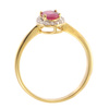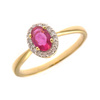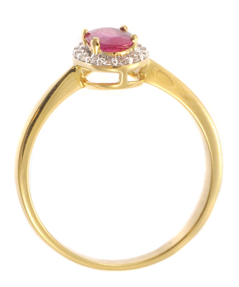 Εντυπωσιακό δαχτυλίδι από χρυσό 18 καράτια με φυσικό ρουμπίνι σε οβάλ κοπή στο κέντρο, το οποίο περιβάλλεται από λαμπερά διαμάντια σε halo σχεδιασμό. Η βαθιά κόκκινη απόχρωση του ρουμπινιού δημιουργεί έναν εντυπωσιακό συνδυασμό με τη λάμψη των διαμαντιών.